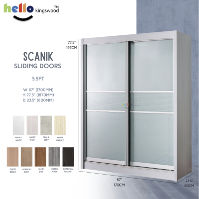 [Kingswood]Scanik推拉门衣柜,4|4.5|5|5.5|6英尺,实心胶合板,包括12个月保修,有9种颜色可供选择