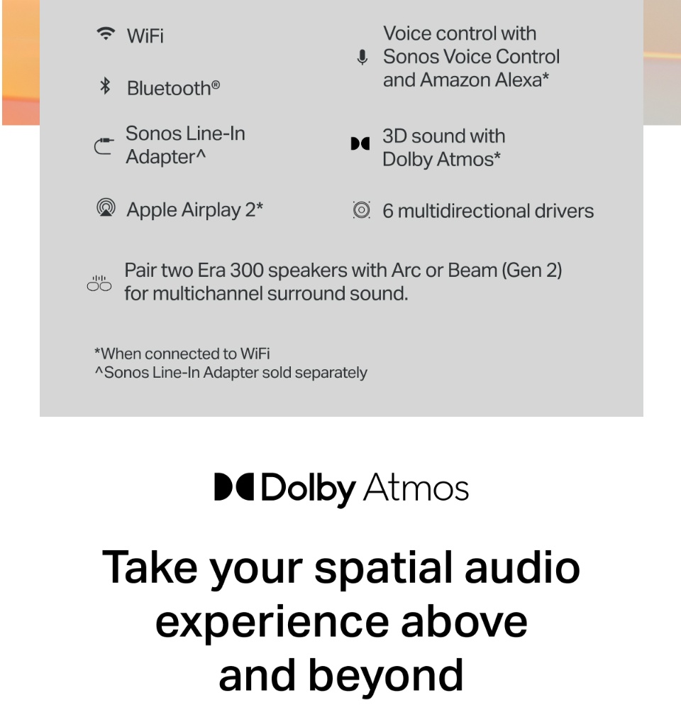 [新增]Sonos Era 300无线智能扬声器,带杜比全景声和空间音频[6月中旬交付]